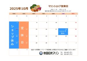 10月のショップ営業日をお知らせいたします。
