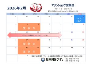 ★2月は、秋田・男鹿・本荘の3マリーナがメンテナンス休業月となります。