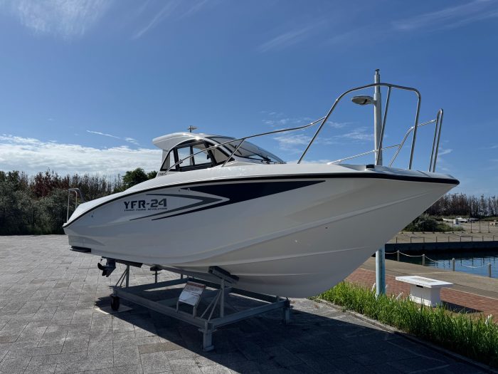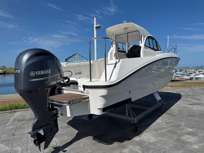 航海灯、バウレールセット、スタンレール、左舷スライドウインドウ、カディフロア、ダブルバッテリーシステム、ブレーカーパネル、デッキウォッシュ、電動マリントイレ、ボートナンバープレート、操舵カバー、
